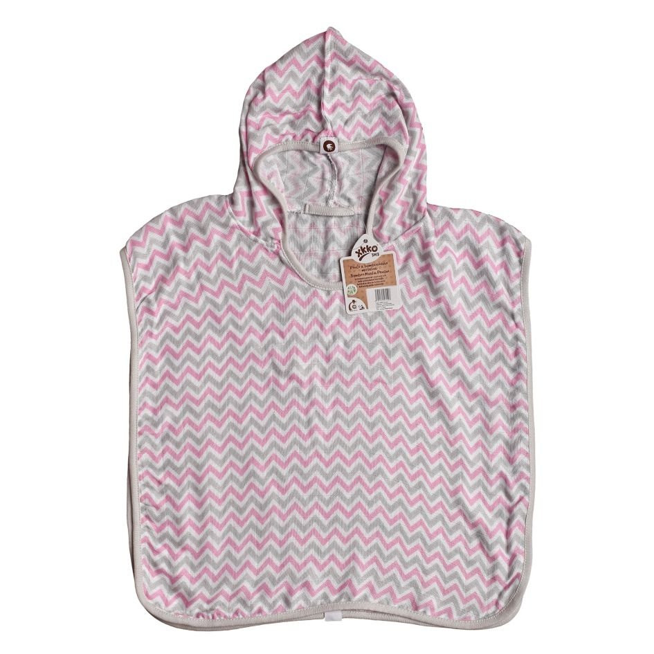 Der Bambus-Poncho mit Kapuze XKKO BMB ist aus unserem hervorragenden Bambus-Musselin hergestellt, den wir auch zur Produktion unserer beliebten Bambuswindeln und Einschlagdecken verwenden.