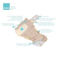 " Das System SENEO besteht aus zwei Teilen.  Eines ist die PUL Überhose und das zweite dann die geformten und zusätzlichen Saugeinlagen. Als Saugkern können auch klassische quadratische Windeln verwendet werden."