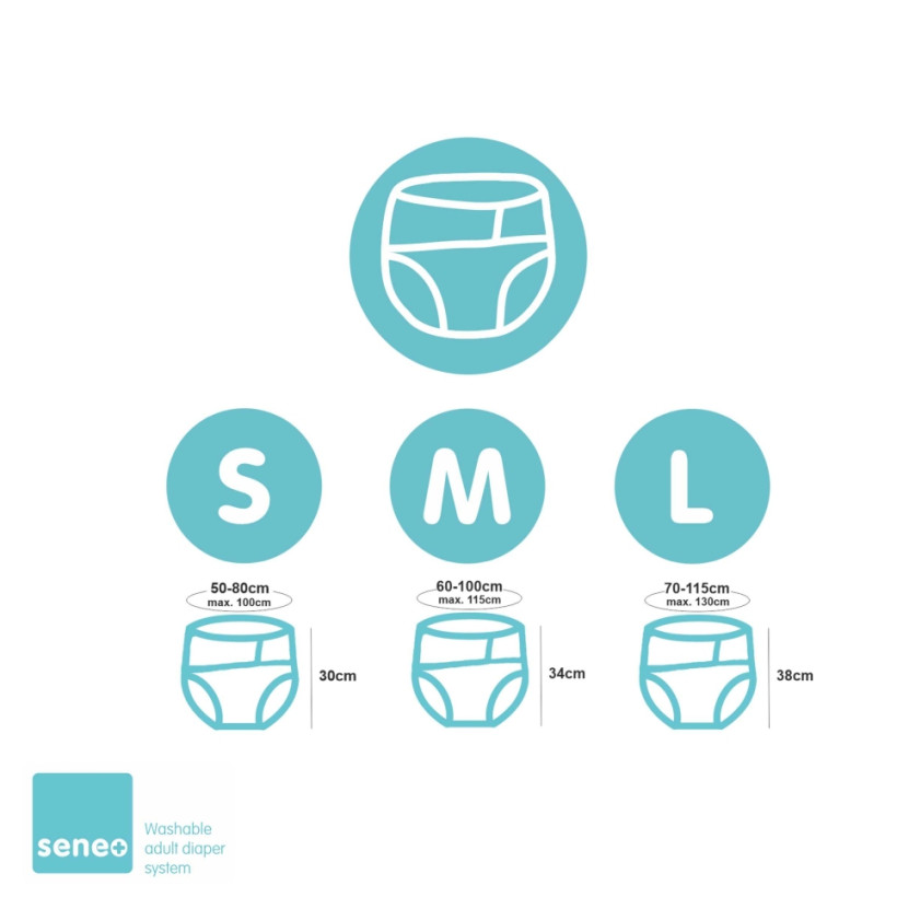 " Das System SENEO besteht aus zwei Teilen.  Eines ist die PUL Überhose und das zweite dann die geformten und zusätzlichen Saugeinlagen. Als Saugkern können auch klassische quadratische Windeln verwendet werden."