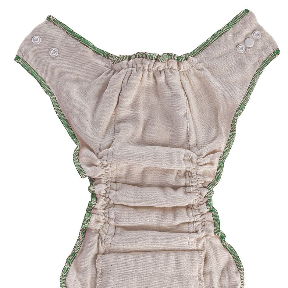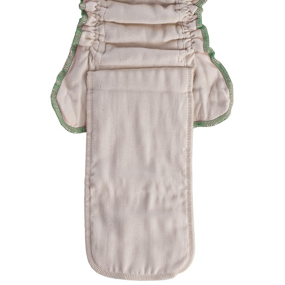 Superweiche, ungebleichte Bio-Baumwoll-Höschenwindeln aus Prefold-Stoff hergestellt. Mit eingenähter Saugeinlage, die man für Jungs vorne doppeln kann.